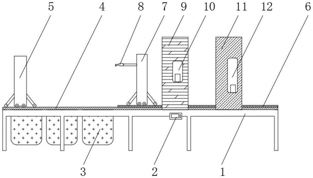 2.根據(jù)權(quán)利要求1所述的一種龍門電泳、噴漆噴粉流水線,其特征在于:所述電動龍門吊車(5)通過導(dǎo)線與主控器(2)電連接,所述電動轉(zhuǎn)移車(7)通過導(dǎo)線與主控器(2)電連接。